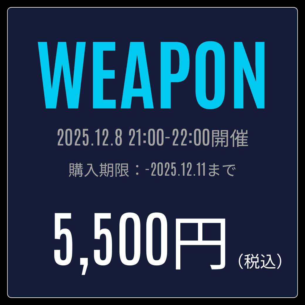 本商品は「WEAPON」単品販売ページです。「WEAPON」+「THINKING」+「未来会議」の3本セットをご希望の方は、ショップの商品一覧に戻り、『世界線ZEROパック』をお選びください。