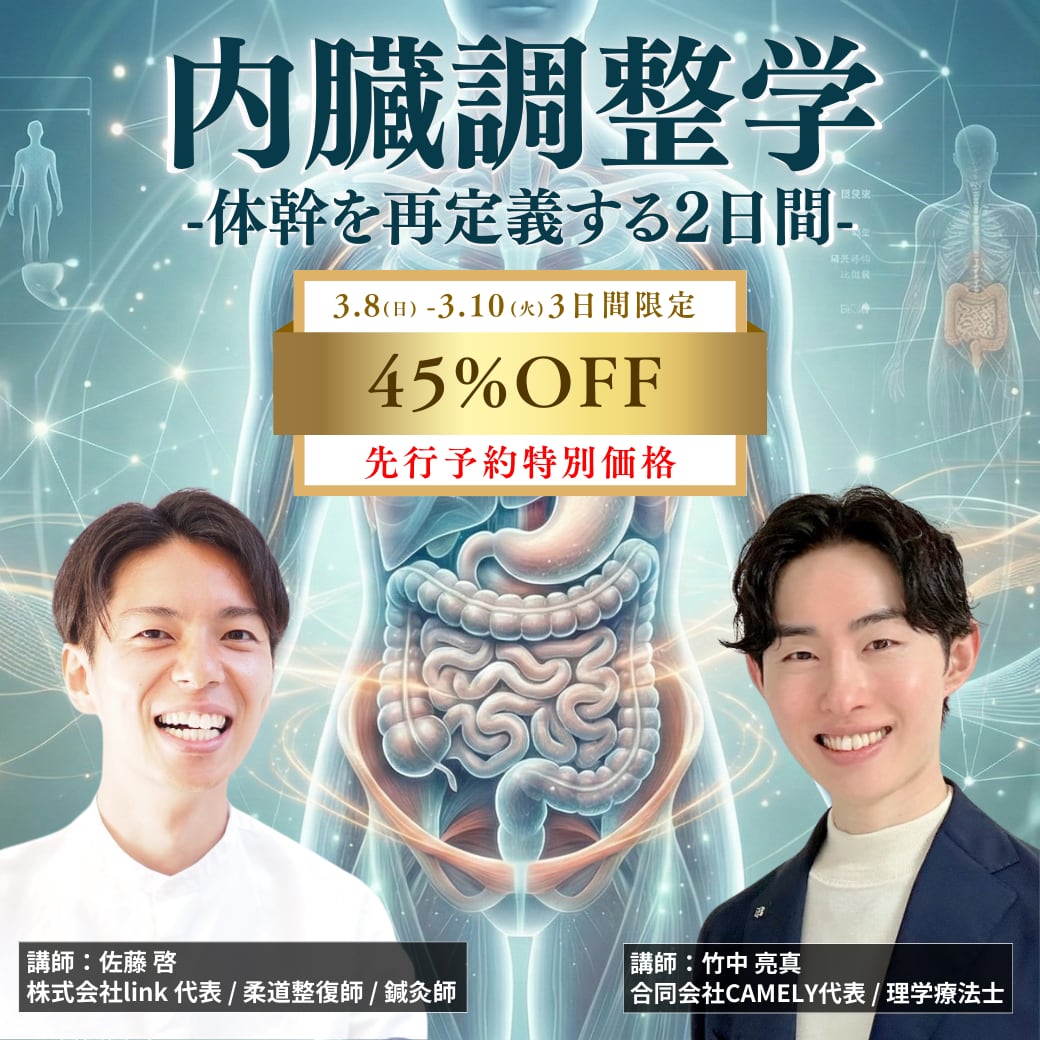 本セミナーでは、内臓を“臓器”としてではなく、位置・可動性・テンションを持つ構造体として理解し、筋骨格と同列の「調整対象」として扱える視点を身につけます。