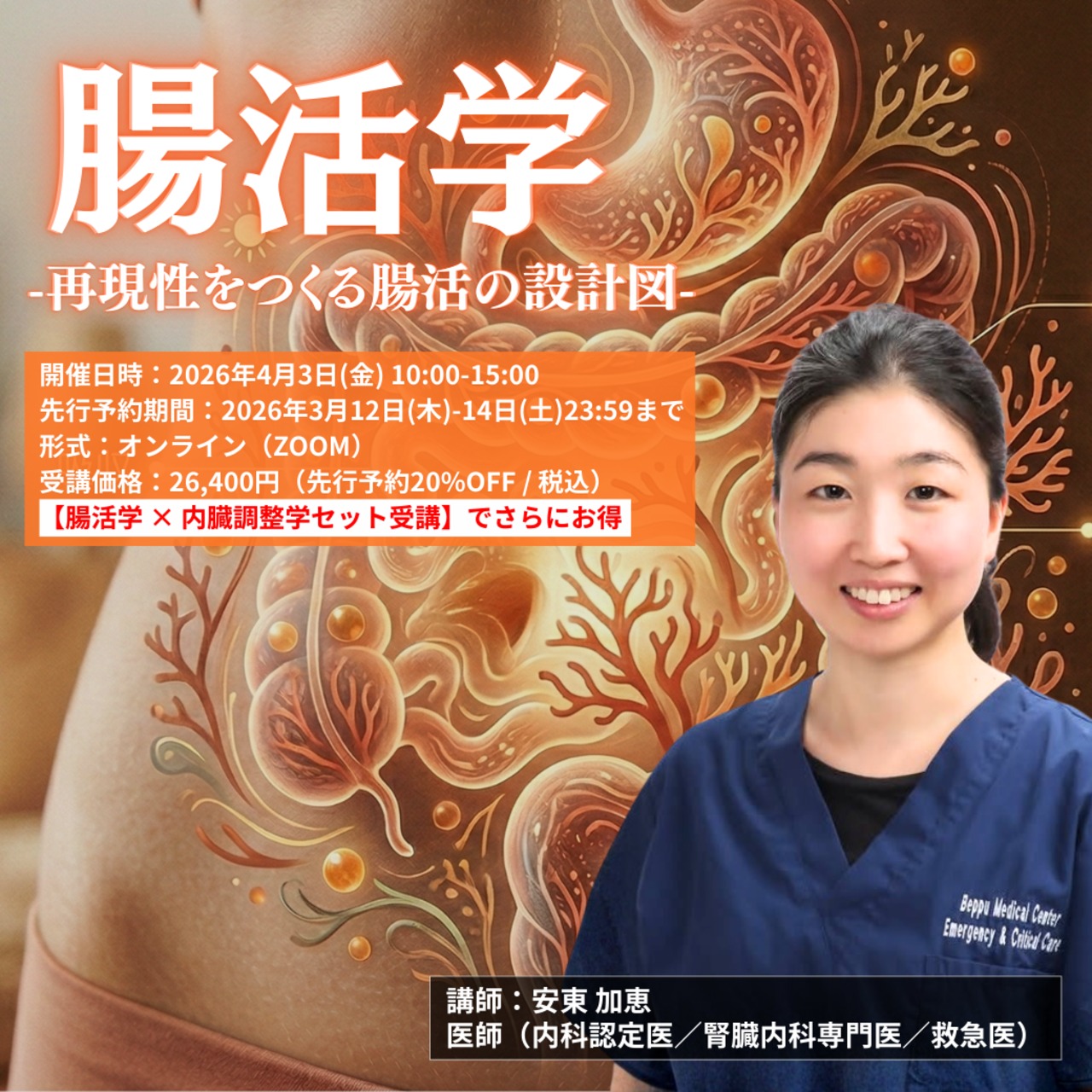 ※「腸活学+内臓調整学 セット受講」、もしくは「内臓調整学を購入済み」でセット受講をご希望の方は該当商品からご購入下さい。